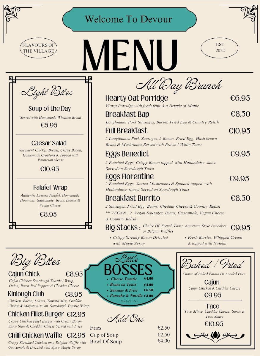Devour Kinlough Menu